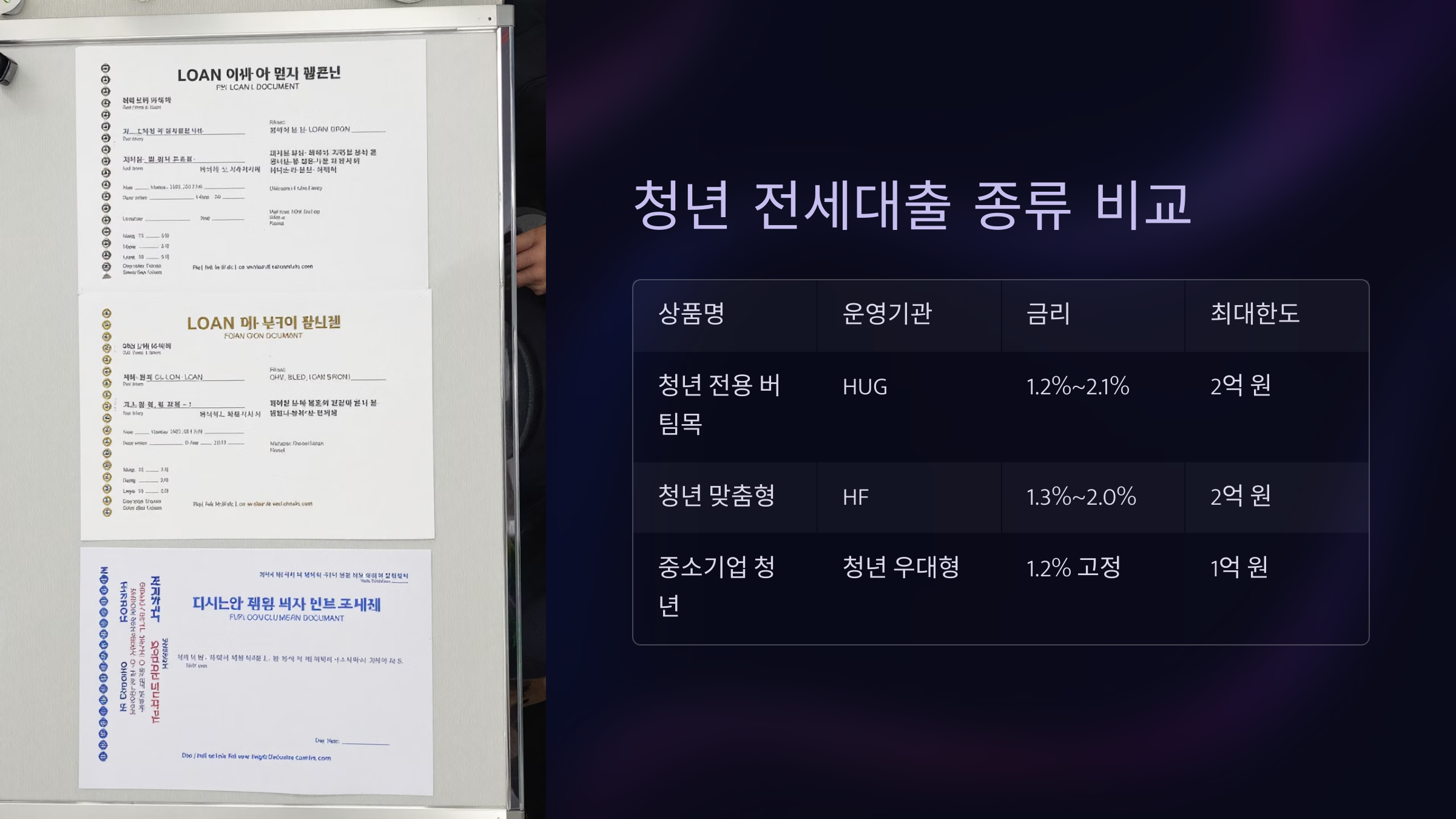 막상 신청하려면 헷갈리는 게 대출 종류예요. 청년 전세대출이라고 해도 운영기관, 금리, 한도 조건이 조금씩 다르거든요. 실제 선택에 영향을 주는 대표 상품 세 가지를 비교해봤어요.