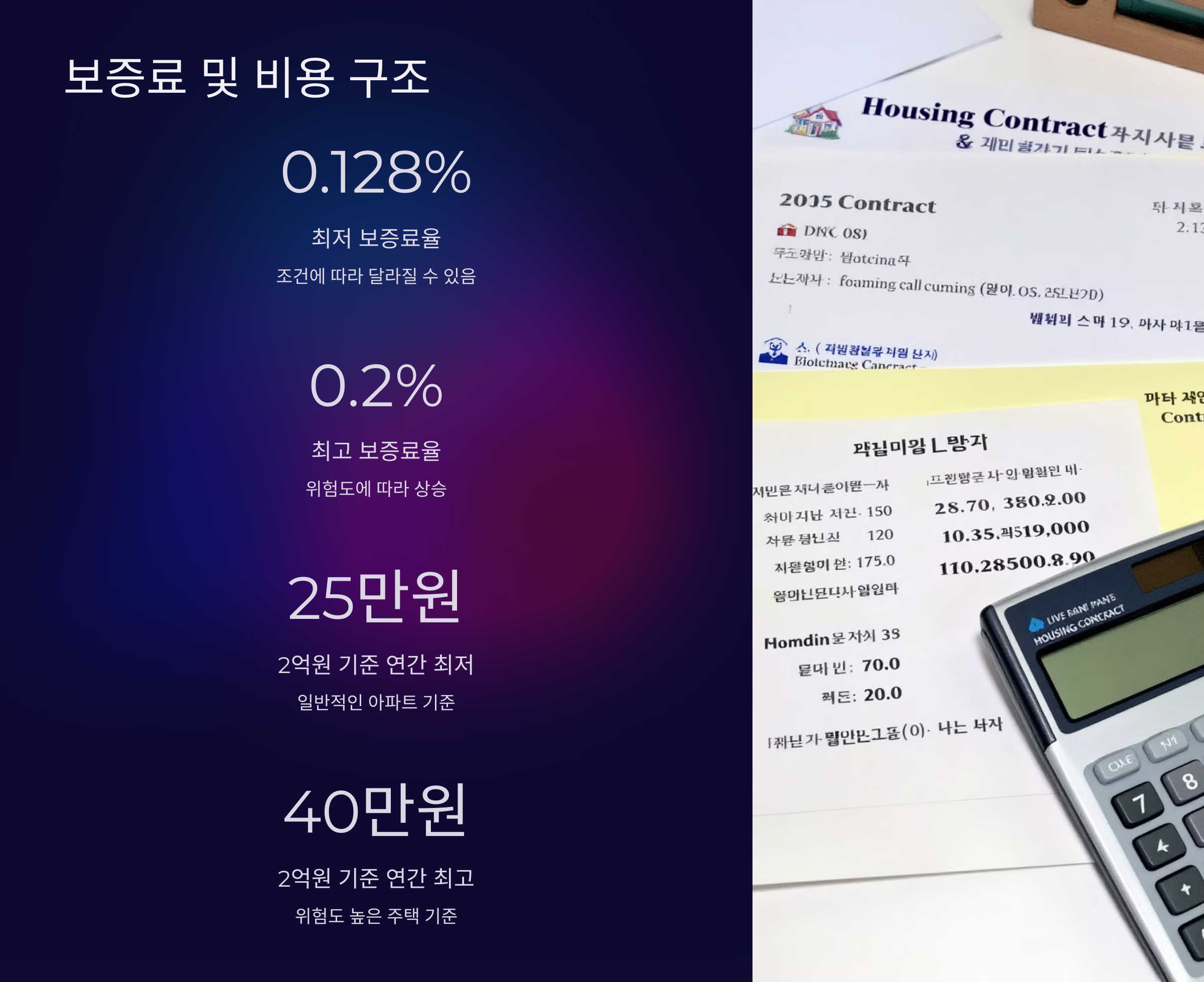 예를 들어 보증금 2억 원일 경우, 연간 보증료는 약 25만 원~40만 원 사이예요. 지역, 주택 유형, 계약 조건에 따라 차이가 있으니, 각 보증기관 홈페이지에서 자동 계산기로 확인해보는 게 좋아요.
